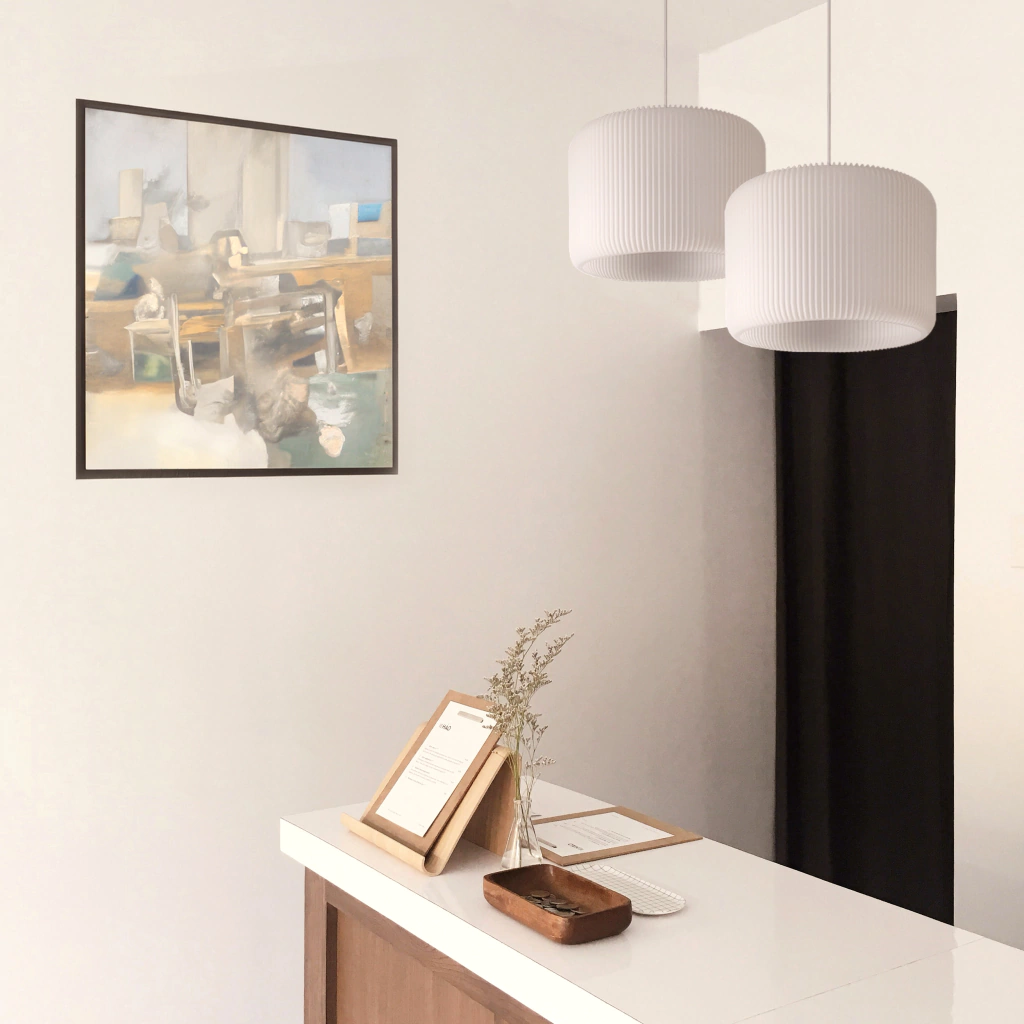 Colores e Iluminación: las lámparas Blancas generan una iluminación general difusa, la luz traspasa las paredes de la tulipa iluminando todo el espacio. Las lámparas Negras y Grises, generan una iluminación puntual, la luz no traspasa las paredes de la tulipa.
